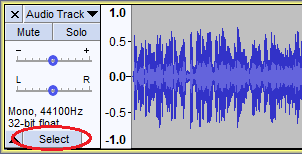 The whole of an individual track can be selected by clicking in the Select button in the Track Control Panel to the left of a track.
