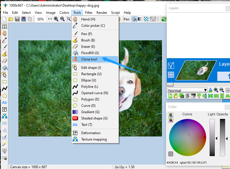 3. Click on the menu option "Tools"->"Clone Tool".