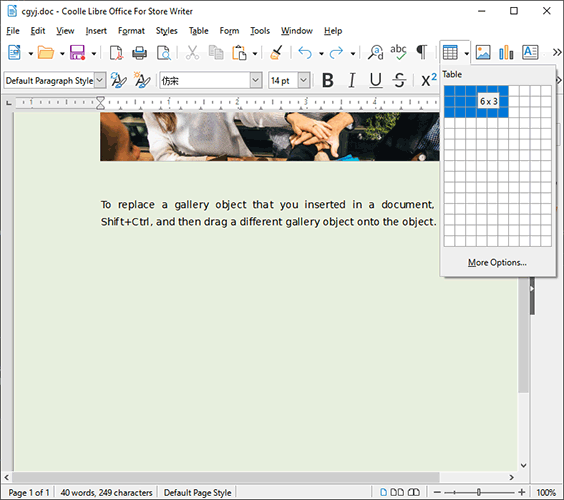 3. In the table grid, drag to select the numbers of rows and columns that you want, and then release.