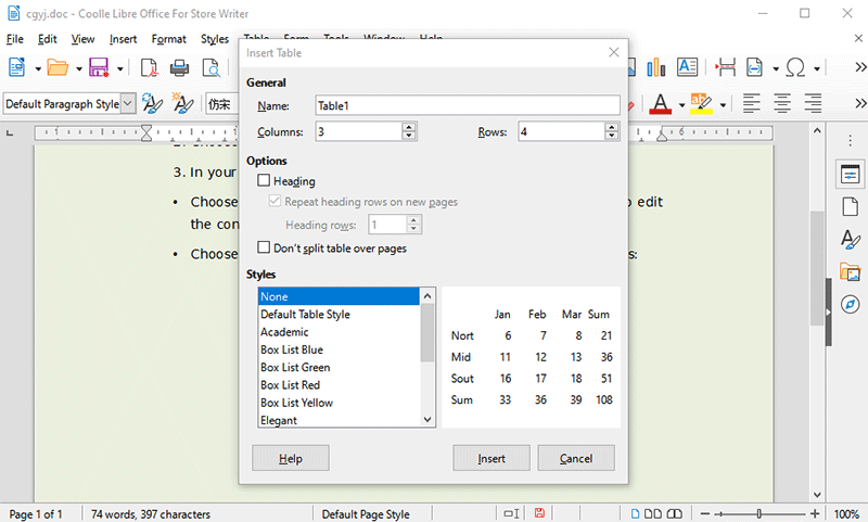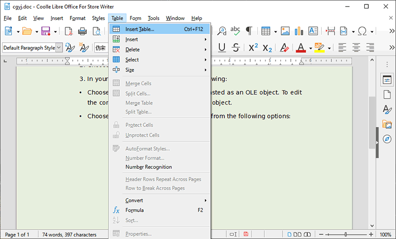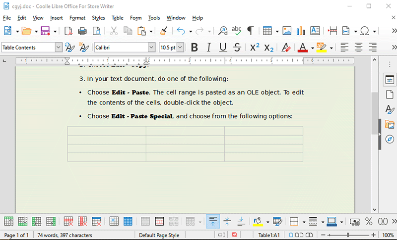 There are several ways to create a table in a text document. You can insert a table from a toolbar, through a menu command, or from a spreadsheet.