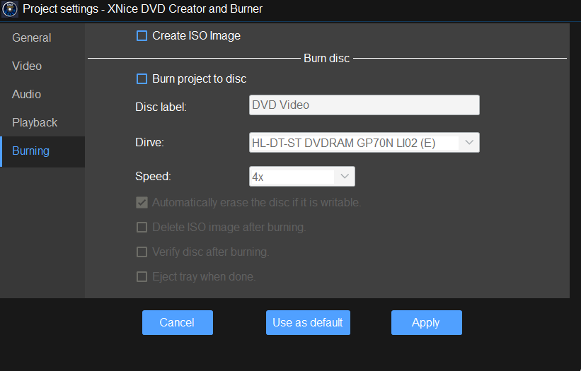 3. If you have a writable drive, you could check the option "Burn project to disc". The program automatically detects if you have an optical drive that can be written to.