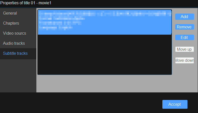7. Subtitles tracks: select the subtitle in the list box, and click "Edit" button.