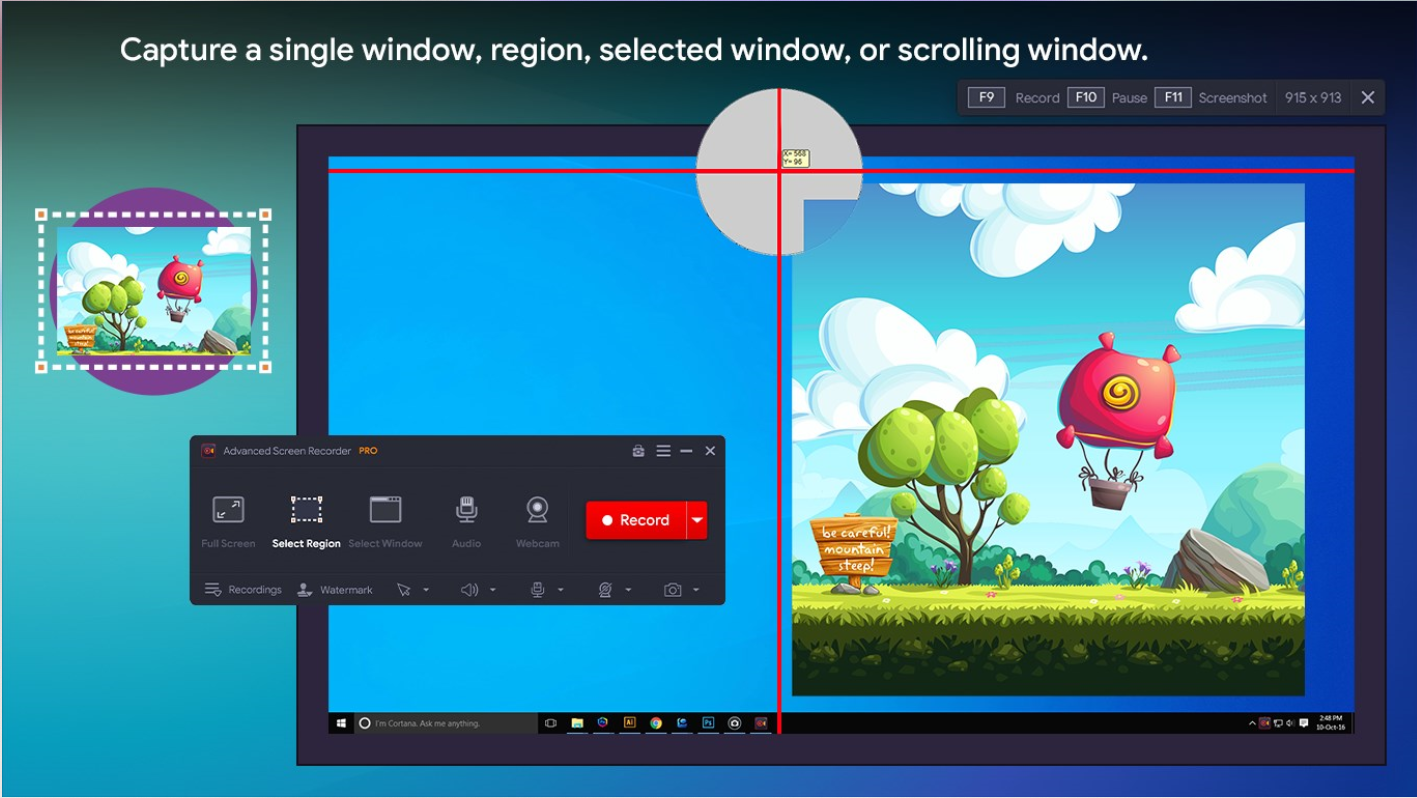 • Easily record video of a Selected Window.